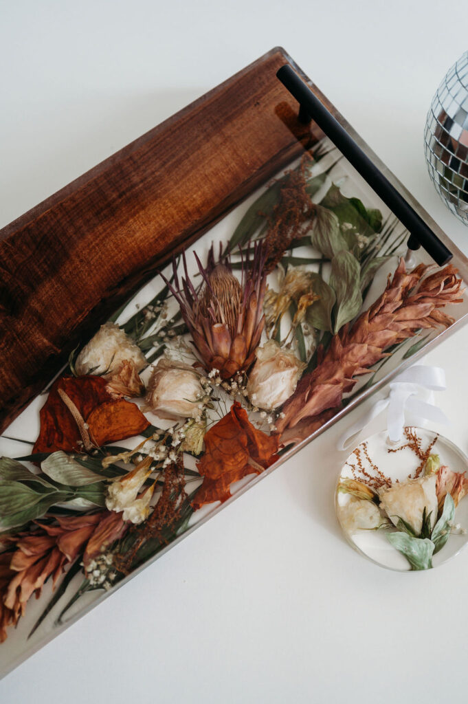 At Lake Dessie Studio, we specialize in transforming your air-dried or pre-dried flowers into stunning functional or display art that stands the test of time. Our epoxy resin art ensures your flowers won’t crumble to dust, allowing you to admire them for many years to come.